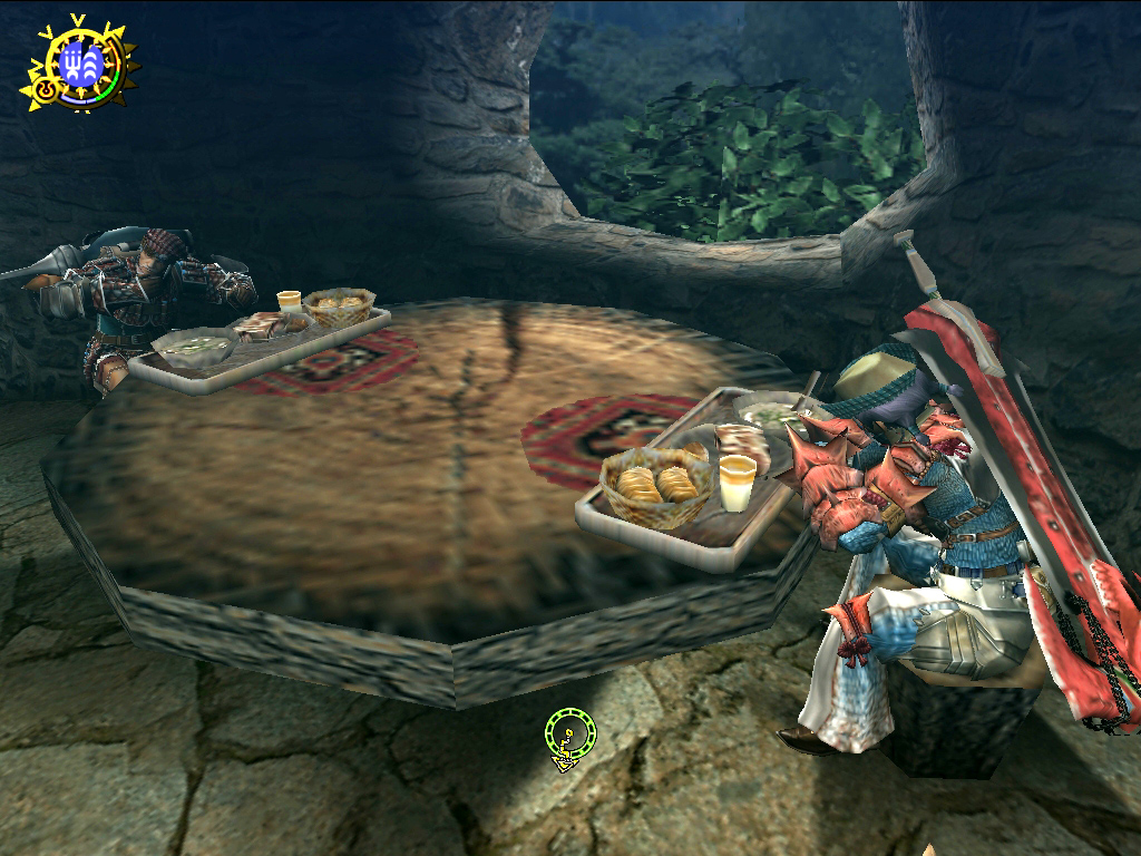 イャンクック討伐に向けて、気合入れに二人でカンパイ。