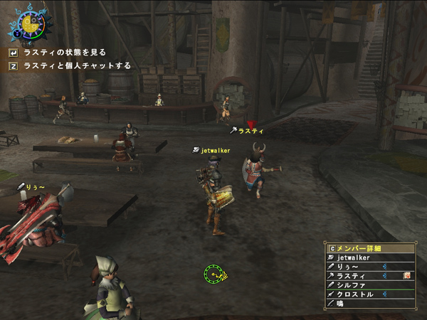 いつもの夜なべメンバー、クロ・アタシ・りぅ~に昨日一緒に狩りをしたラスティを巻き込んで、いざクエストへ!