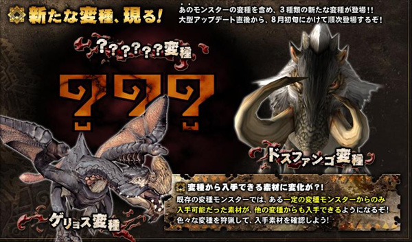 ドスファンゴ&ゲリョスが変種の仲間入りですねぇー!!